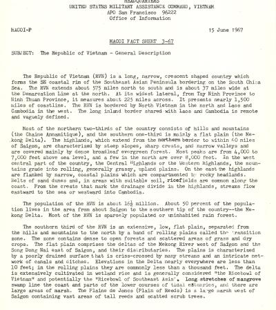 The Republic of Vietnam Fact Sheet, June 15, 1967
