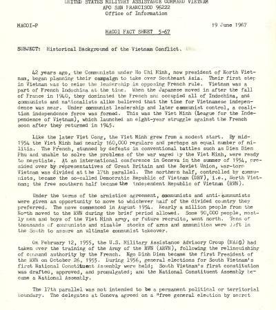 Historical Background of the Vietnam Conflict Fact Sheet, June 19, 1967