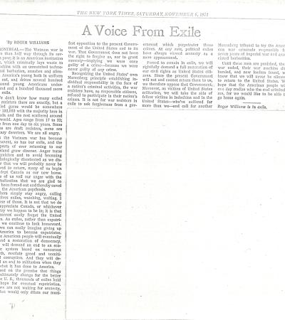 "A Voice From Exile" by Roger Williams, The New York Times, November 6, 1971