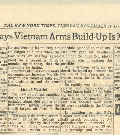 "Pentagon Says Vietnam Arms Build-Up Is Mainly Over", The New York Times, November 21, 1972
