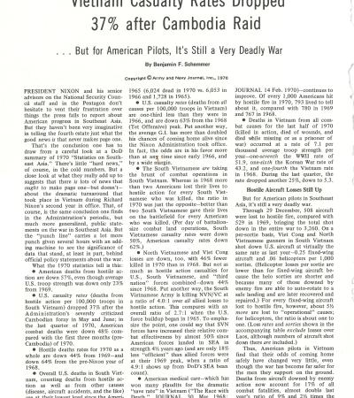"Vietnam Casulaty Rates Dropped 37% After Cambodia Raid" by Benjamin F. Schemmer, Armed Forces Journal, January 18, 1971