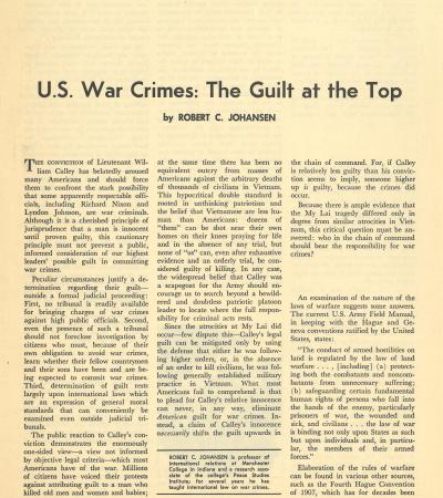 "U.S. War Crimes: The Guilt at the Top" by Robert C. Johansen, The Progressive, June, 1971