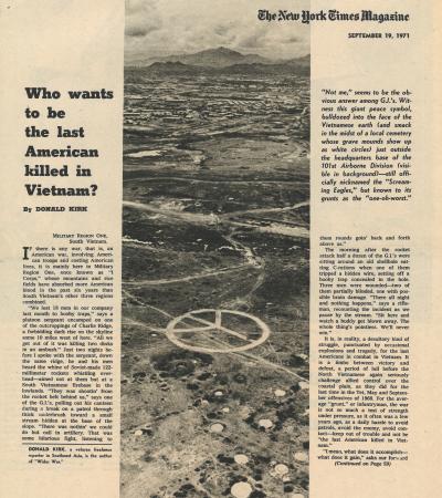 "Who Wants To Be The Last American Killed In Vietnam" by Donald Kirk, The New York Times Magazine, September 19, 1971