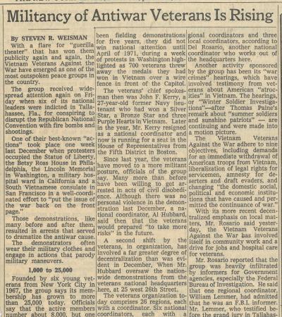 "Militancy of Antiwar Veterans Is Rising" by Steven R. Weisman, The New York Times, July 16, 1972