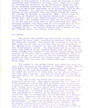 This document is the analysis of a survey conducted with 244 U.S. soldiers returning from Vietnam to understand their views on the war. Most soldiers reported that the war had mixed or negative effects on them. Many felt the South Vietnamese were more interested in survival than fighting, and nearly 40% of soldiers believed the U.S. made a serious mistake entering the war.