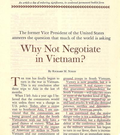 "Why Not Negotiate in Vietnam?" by Richard M. Nixon, The Reader's Digest, December, 1965
