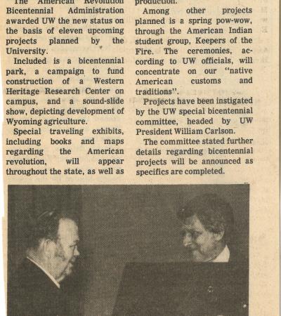 "University Gets Bicentennial Nod", Casper Star-Tribune, May 27, 1975