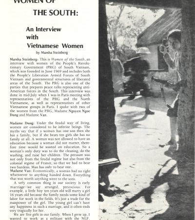 "Women Of The South: An Interview With Vietnamese Women" by Marsha Steinberg, The Second Wave, Vol. 2, No. 2